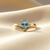 A pear-shaped Blue Topaz (6mm x 8mm) is set within a hand-carved setting with an oriental contemporary style.